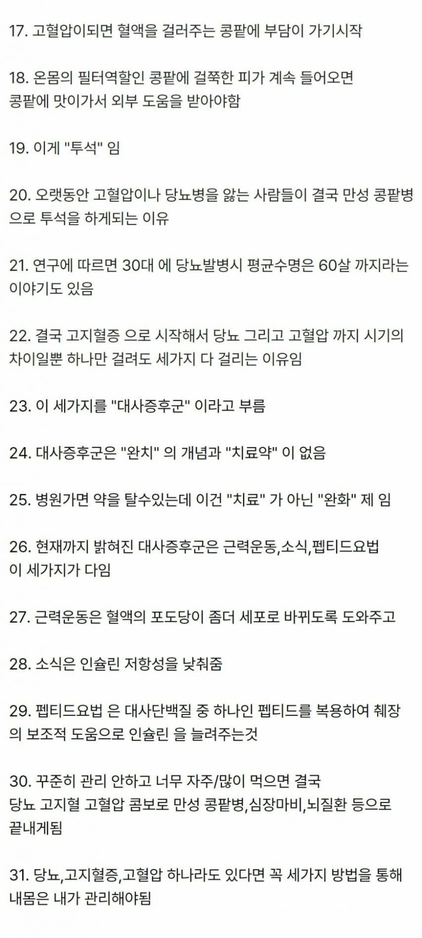 정기적인 검진: 안과, 신장내과 등에서 정기적인 합병증 검사를 받습니다.