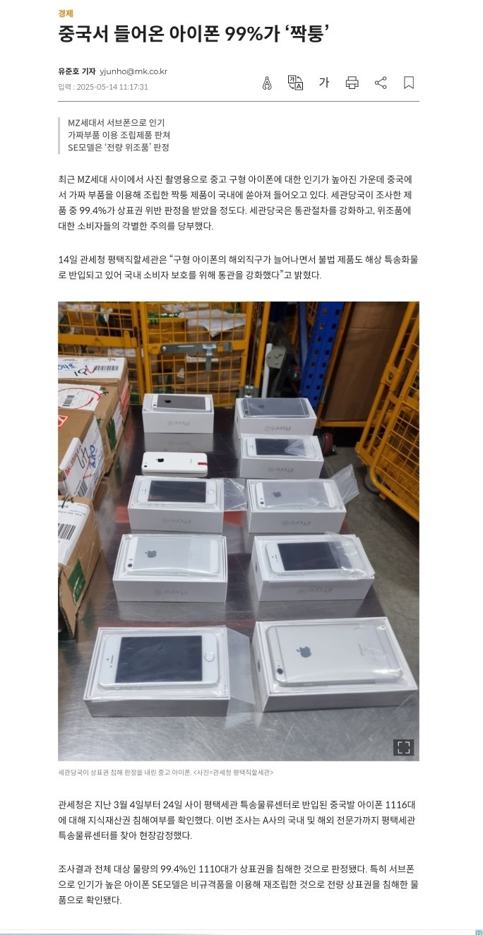 중국에서 들어온 아이폰이 거의 다 짝퉁