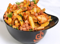 진정한 의미의 한미 연합이네 한번 맛보고 싶다 샌프란시스코 자이언츠의 한국인의 날 행사 음식. 김치+감튀+..